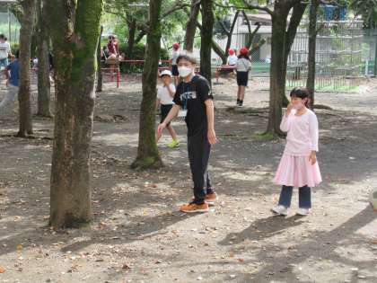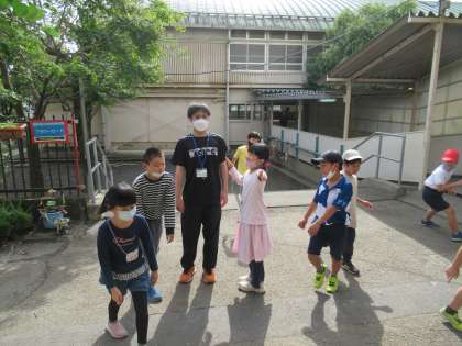 今日から4週間の実習が始まりました。3年生に入ります。昼休みは中庭で鬼ごっこをして遊びました。