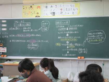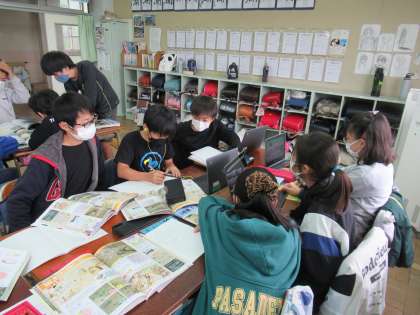 グループ学習で互いに調べたことを伝え合ったり、分からないことを聞き合ったりしています。