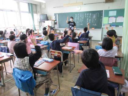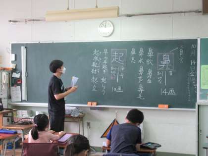 教育実習生が新出漢字の指導を行いました。