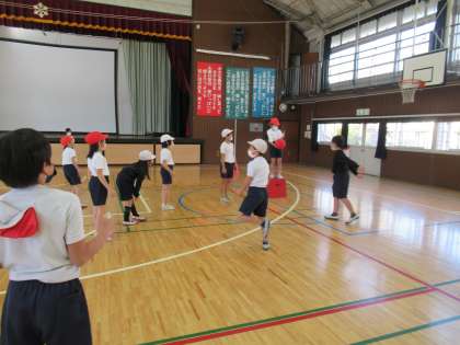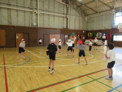 ポートボールの試合をしました。よく声をかけ合い、パスを通していました。