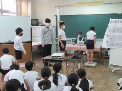 保健指導の後、身長と体重をはかりました。