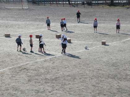 的当てゲームをしました。ねらったところにボールを投げたり、蹴ったりできるようになってきました。