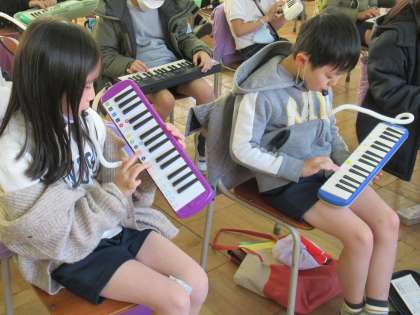 鍵盤ハーモニカで「ミッキーマウスマーチ」を演奏しました。