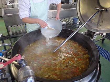 今日の汁ものには、八王子産米100%で作る「高尾の天狗」という日本酒を作るときにできる酒粕を使いました。
