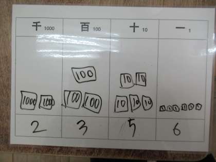 「1000をこえる数」の学習をしています。大きい数の構成について考えました。