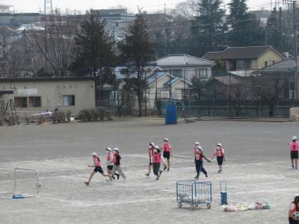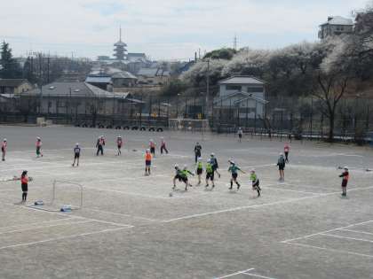 ゴール型ボール運動の「サッカー」をしました。声を掛け合って、パスをつなげていました。