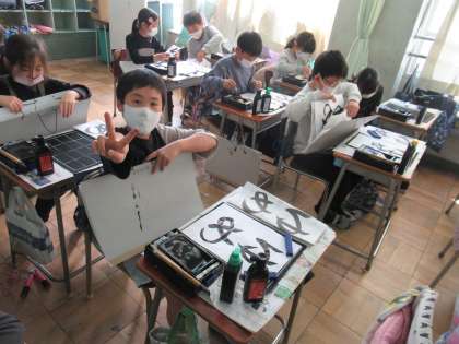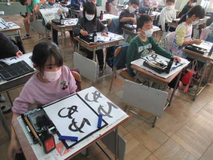 毛筆書写で「ゆめ」と書きました。3年生からはじまった毛筆の学習ですが、こんなに上手になりました。