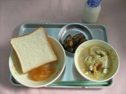 セルフサンド 手作りリンゴジャム みそすいとん 大学芋 牛乳