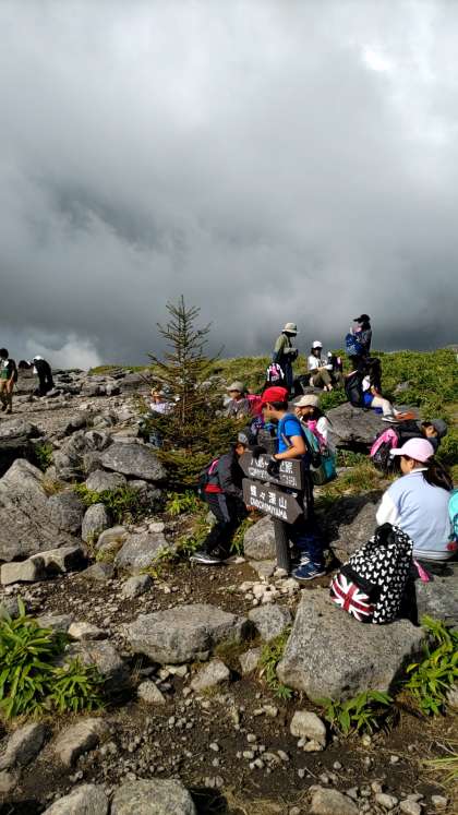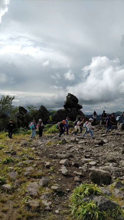 登山途中の写真ですが、全員無事下山し、バスで宿に向かいます。