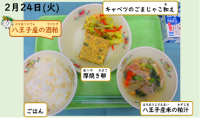 今日の献立:吹き寄せおこわ・ごま和え・鶏団子汁・果物(巨峰)・牛乳