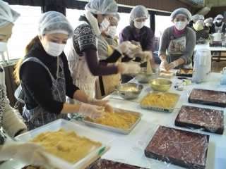 どんど焼き大盛況6 公開日 2012/01/14 更新日 2012/01/14 今日の出来事 つきあがったお餅はのり・きなこ・あんこの3種類。体育館に並んで、トン汁と3色のおもちをいただきます。「この瞬間を待っていた!?」