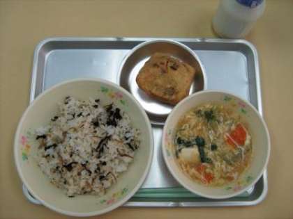 2月1日の給食 公開日 2012/02/01 更新日 2012/02/01 今日の出来事 磯ごはん 油あげの春巻き かきたま汁 牛乳 (油あげの春巻きとは、春巻きの皮の代わりに、油あげを使いました。中華料理から一転和風な料理に変わりますね。)