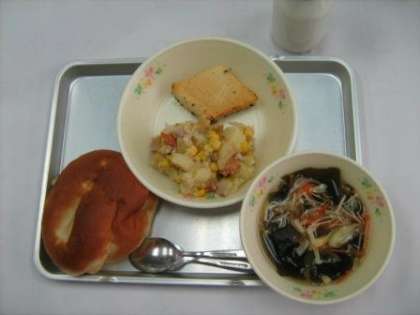 2月2日の給食 公開日 2012/02/02 更新日 2012/02/02 今日の出来事 パインパン イカのハーブ焼き ポテトサラダ えのきとわかめのスープ 牛乳 (イカは、日本人が好きな魚介類の一つです。イカは、高たんぱく低kカロリーです。頭の働きをよくするDHAや、血液をサラサラにしてくれるEPAも含まれています。)