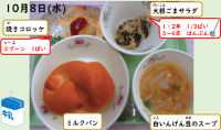 「給食室では、お米の種類や季節によって水分量を微調整しています。混ぜご飯やチャーハンや料理によっても水分量を変えて、子供たちが食べやすいように考えながら調理をしています。今日は豆ひじきごはんです。苦手な子供もたくさんいますが、自分の健康を思ってたくさん食べてほしい献立です。」