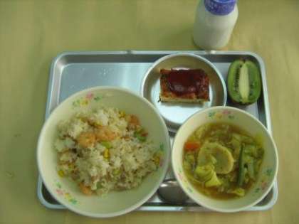 2月20日の給食 公開日 2012/02/20 更新日 2012/02/20 今日の出来事 ミックスピラフ ミニオムレツ カレースープ煮 キウイ 牛乳 (ピラフは、チャーハンと違い、生の米を炒め、具材と一緒に炊き込む料理です。ピラフの起源はトルコで、トルコから世界各国に伝わりました。トルコ料理と言われても、イメージがわかないかもしれませんが、トルコ料理とは知らずに、日常的に食べていると思います。他に何があるか、調べてみるのも面白いですね。)