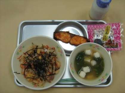 3月2日の給食 公開日 2012/03/02 更新日 2012/03/02 今日の出来事 五目ちらし寿司 鰆の西京焼き すまし汁 ひなあられ 牛乳 (3月3日は、桃の節句と言われ、女の子の健やかな成長と幸せを願い、お祝いする日です。ちらし寿司は、お祓いのために野外で、いろいろな食材を彩よく、酢飯に混ぜて食べたのが始まりと言われ、各地の名産が使われています。各家庭で、行事の楽しみ方は色々あると思いますが、行事や伝統を大切に受け継いで行って欲しいと思います。)