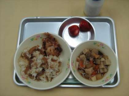 3月8日の給食 公開日 2012/03/08 更新日 2012/03/08 今日の出来事 五目ふかし 鶏肉のみそ焼き こづゆ いちご 牛乳 (五目ふかしとこづゆは、福島県の郷土料理です。昨年3月11日は、東日本大震災が起きました。大地震の教訓を忘れず、また、東北の方々を応援する意味で、福島の郷土料理を食べて欲しいと思います。)
