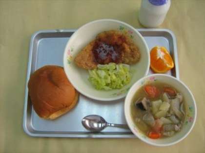 3月14日の給食 公開日 2012/03/14 更新日 2012/03/14 今日の出来事 セルフカツサンド ボイルキャベツ 鶏肉とごぼうのさっぱりスープ煮 はるみ 牛乳 (トマトバンズパンに、とんかつとキャベツを挟んで、カツサンドにして食べます。鶏肉とごぼうのさっぱりスープ煮には、旬を迎えたセロリが入っています。セロリは、香りの野菜なので、幼い頃は苦手でも、大人になるにつれ、食べられるようになります。まずは、スープなどで加熱したものから味や風味に慣れてください。)