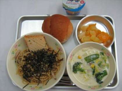 4月24日の給食 公開日 2012/04/24 更新日 2012/04/24 今日の出来事 バターロール きのこスパゲッティー いかのハーブ焼き 春野菜のミルクスープ ミックスフルーツ ヨーグルト (イカは日本人が好きな魚介類の一つです。イカにはたくさんの種類があります。カロリーが低く、高たんぱくで、頭の働きをよくするDHAや、血液をサラサラにしてくれるEPAが含まれています。体によいので、苦手な人もできるだけ食べるようにしましょう。)