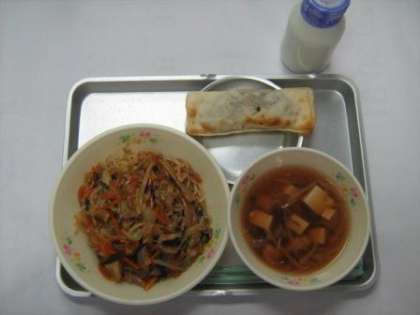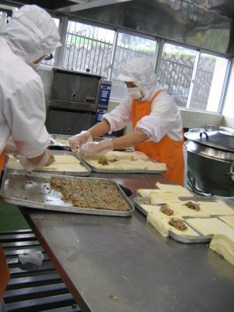 (今日の棒餃子はひとつひとつ給食室で包みました。棒餃子には、豚肉、ながいも、白菜、ニラ、ねぎ、にんにく、しょうがなど、たくさんのおいしいものが入っています。一見、何が入っているか分かりにくいですが、よく見て、よく味わうと、素材の多さに気付くと思います。そして、料理する大変さも、少しわかってもらえるかな?っておもいます。)