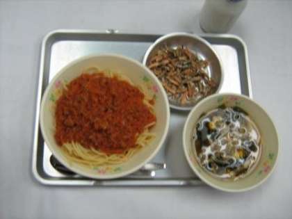 5月22日の給食 公開日 2012/05/22 更新日 2012/05/22 今日の出来事 スパゲッティーミートソース わかめスープ ごまめナッツ 牛乳 (ゴマメとは、小さめのカタクチイワシを素干しにしたものです。田作(たづくり)ともいい、 田畑の肥料にしたための呼び名です。「ごまめ」を健康の意味の「マメ」と取ってめでたい食べ物として、お祝いや、お正月に食べます。)