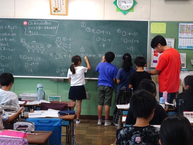 4年生は「□を使った式」を復習しながら「式と計算の順序」を学習していました。