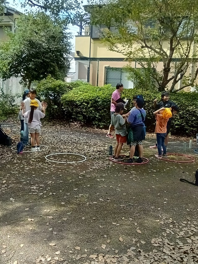 サンフラワー班ごとにオリエンテーリングを楽しみます。体を使うゲームやクイズ等に挑戦して、クリアして文字を集めます。全部集めると言葉が完成。いくつの班が完成できるでしょうか。