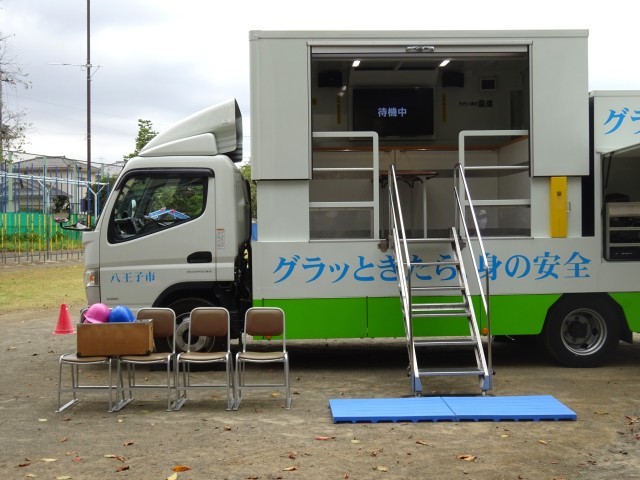 その後は、4年生が起震車に乗って大きな揺れを体験しました。安全を確保した上で大きな揺れを体験しましたが、本当の地震だととても怖いと思います。このように、様々な想定の避難訓練を重ねることで、全校児童が落ち着いて自分の身を守るようになってほしいです。