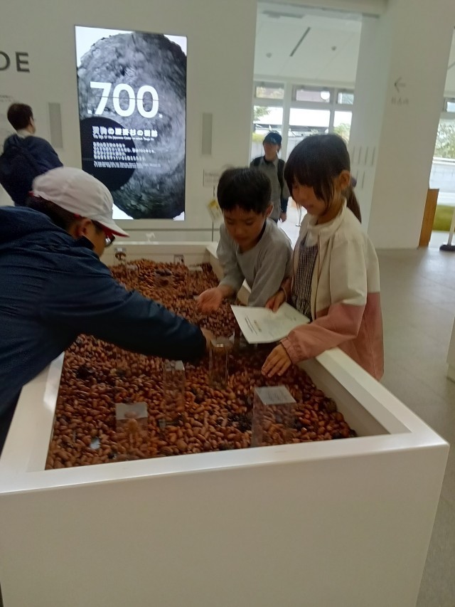 高尾山を下山し、599MUSEUMに行きました。きれいな建物に入ると、高尾の自然が展示されていて、子供たちは興味津々の様子。ステキな映像も鑑賞しました。
