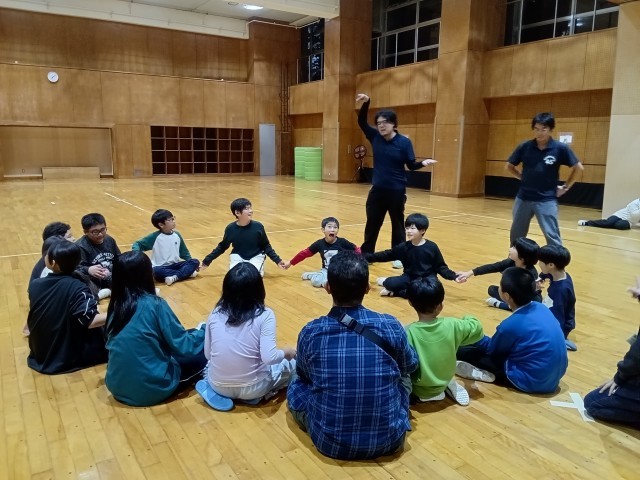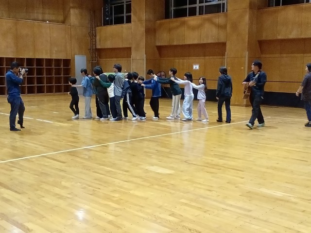 残念ながら雨が降り始めてしまい、キャンプファイヤーは中止。でも、宿舎の方がとても楽しいレクレーションをしてくれました。子供たちはノリノリでたっぷり楽しみました。
