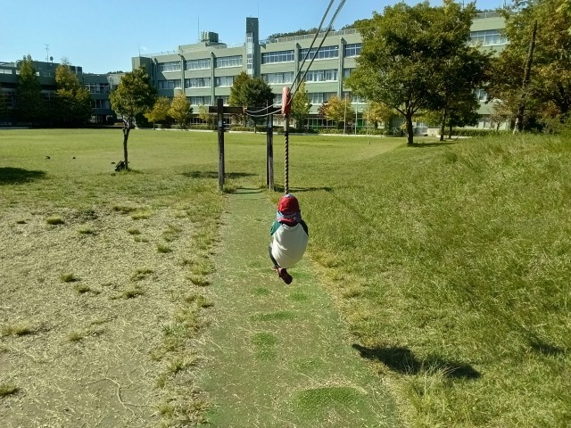 午前はプロジェクトアドベンチャーを実施、体をたくさん動かしました。昼食にはカレーライスをいただきました。昼休みは施設グラウンドにある遊具でたっぷり遊びました。