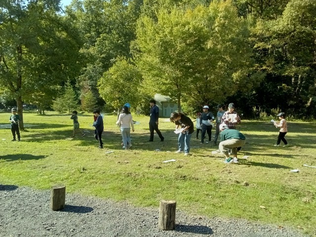 午後は自然発見ゲームをしました。五感を使うクイズや葉っぱの形に注目したゲーム、クモの巣チャレンジ、そして自然発見ビンゴを楽しみました。