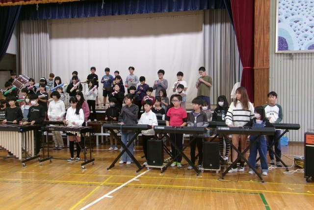 5年生は音楽会に向けて、言葉のリズムアンサンブルを練習中です。清水移動教室の言葉をつかって、リズムを工夫して音楽づくりをしました。本番に向けて、声をしっかり出し、リズムの面白さを伝えるために練習しています。合奏は、様々な楽器を使って演奏します。教室前の廊下には、練習のふりかえりを掲示して、全員の気持ちが日々高まっています。