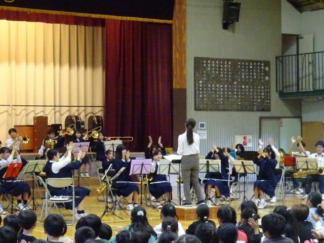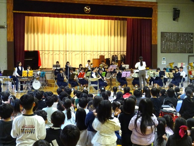 放課後の時間を活用して、希望者で横川中学校吹奏楽部の演奏発表会に行きました。