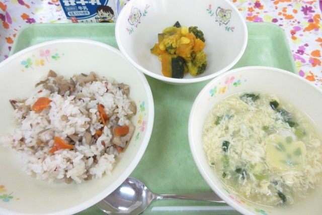 ハロウィンは、秋の収穫を祝い、悪霊を追い払うヨーロッパのお祭りでしたが、最近はお化けの仮装やパーティを楽しむイベントになりました。ハロウィンでは、かぼちゃの提灯を飾ります。かぼちゃはサラダに、スープにかぼちゃの提灯の形のかまぼこをいれました。