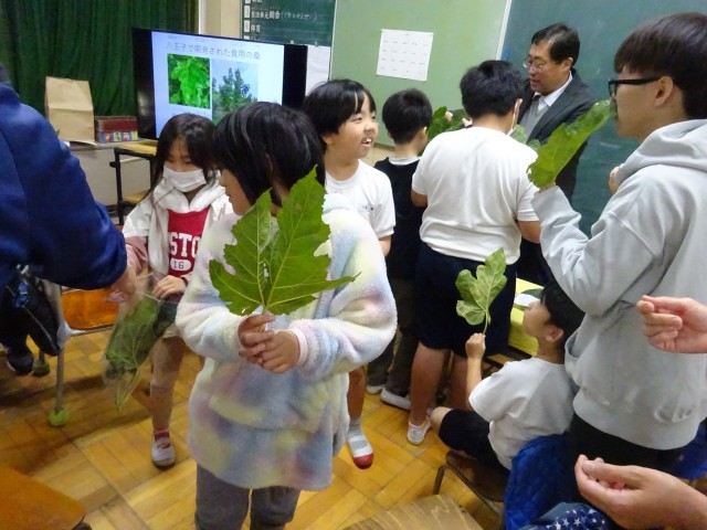 たんぽぽ学級は生活単元等で八王子のことを学んでおり、大学の先生から「桑」についてたくさん教えていただきました。