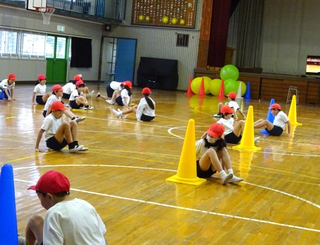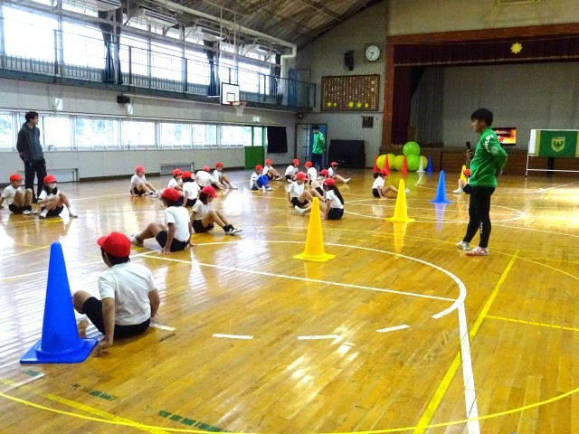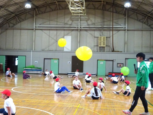 座ったままで鬼ごっこしたり大きな風船をパスしたりしました。