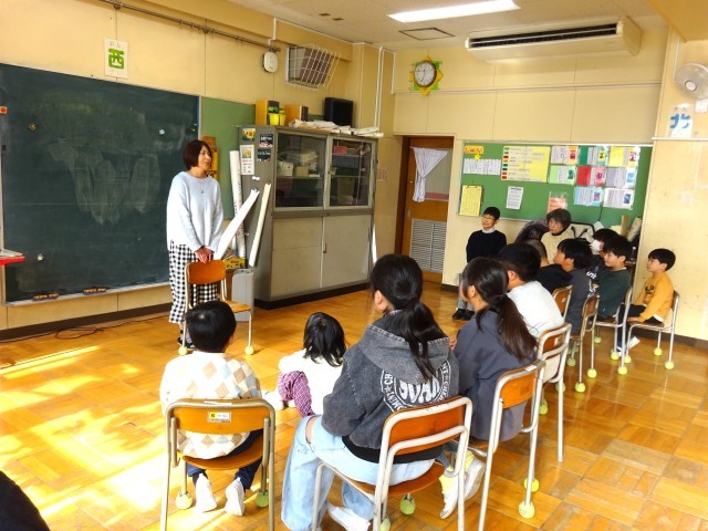 学年・学級ごとに行われている「おはなし会」、今日はたんぽぽ学級の回でした。