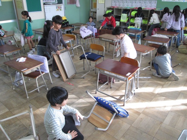 今日で2学期が終わりました。8月から溜まった汚れやほこりなどをいつもよりも丁寧に掃除しました。椅子や机の脚、下駄箱やごみ箱などいつもは掃除しないような場所の掃除もしました。自分たちで掃除した方がいい場所を見つけ、大掃除に取り組んでいました。今日まで使ってきた教室に感謝の気持ちをもつことができました。