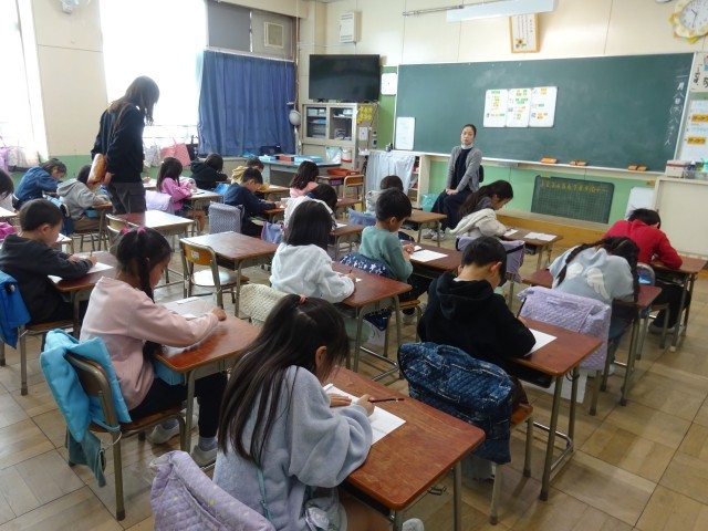 教室、多目的室、体育館で行われ、子供たちは真剣な表情で取り組みました。