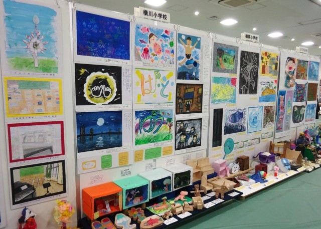 市立小中学校・義務教育学校からたくさんの作品が集まり、横川小学校からも代表作品が展示されています。