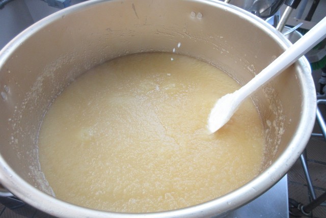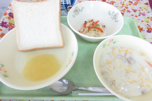 りんごジャムは、給食室でコトコト煮た、手作りです。
