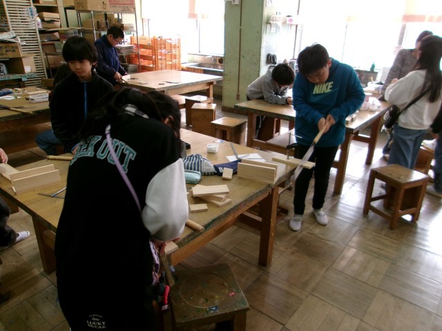 4年生の図工では、今、木工作の箱づくりに取り組んでいます。