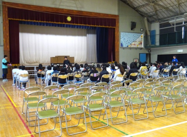 卒業式まで約2週間、5年生と6年生がそれぞれ体育館で練習を始めています。