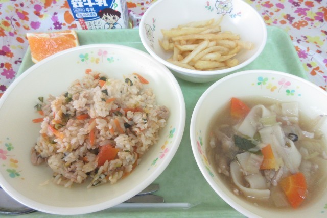6年生のリクエスト献立の中で、一番にリクエストの多いのがフレンチポテトです。6年生はあと2回で、小学校の給食も終わりです。