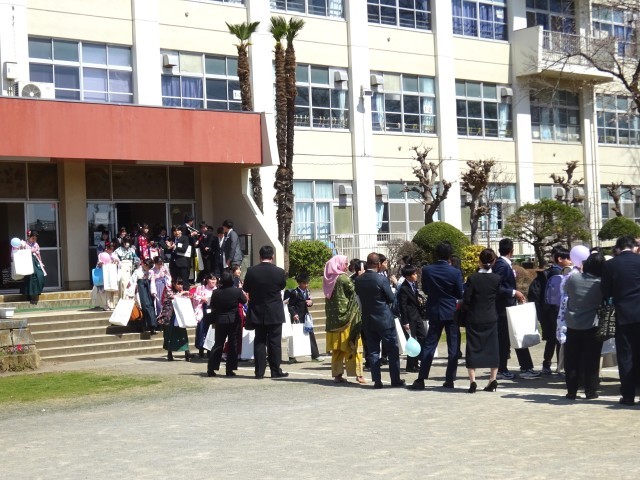 保護者の方々や地域の皆様に見守られ、温かい雰囲気の中で送り出された子供たち。