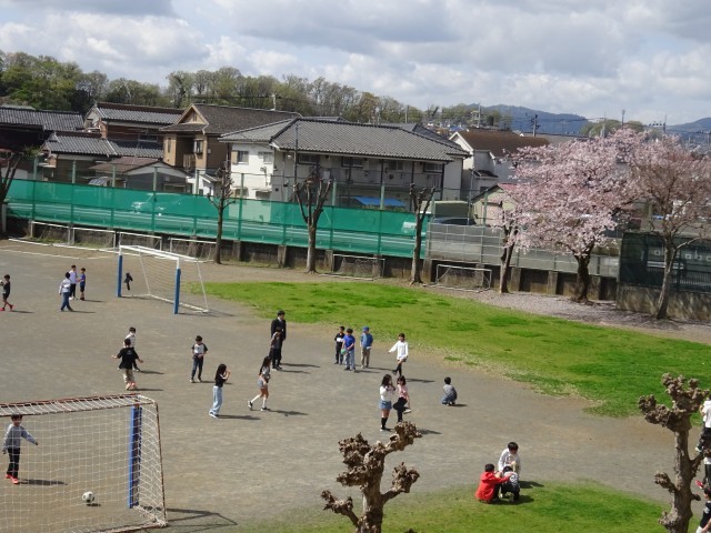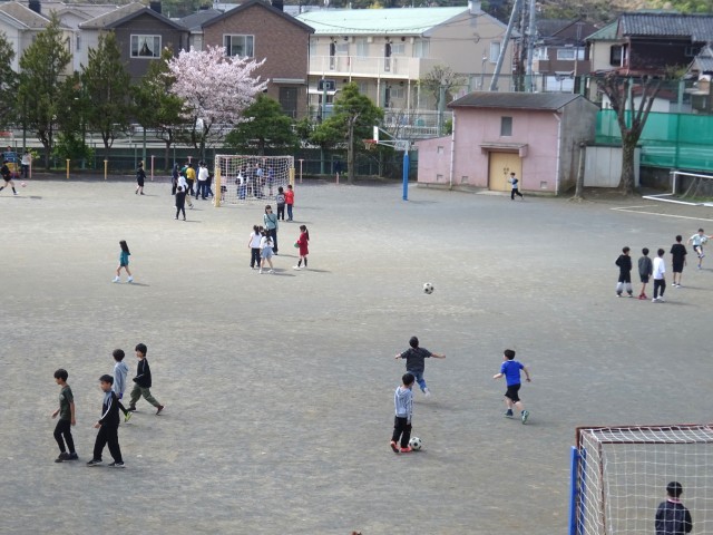 休み時間にはたくさんの子供たちが校庭に飛び出してきました。