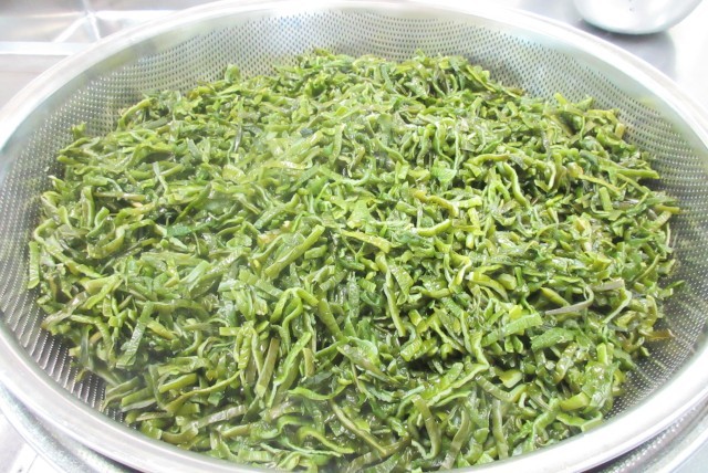 茎わかめは、程よい塩分になるように、給食室で塩抜きをしました。