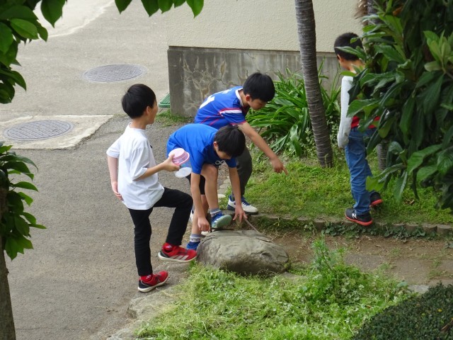 ミニトマトのお世話をしたり、生き物探しをしたりと、子ども達が休み時間を楽しむ様子が見られました。