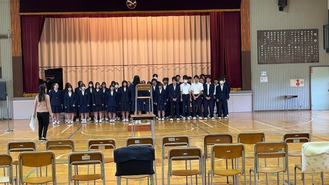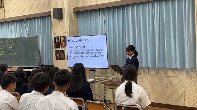 本日 6時間目 3年生対象 進路説明会が行われました。高校受験に向け、色々と確認を進めていく機会になりました。画像は進路説明会、2年生職場体験発表会、3年生音楽祭リハーサル です。